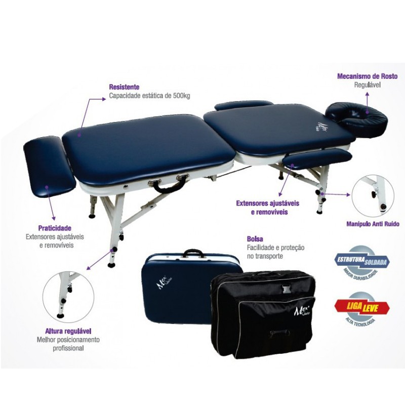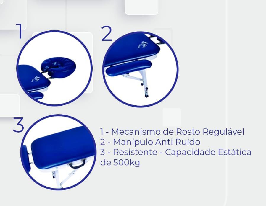 - Comprimento: 132 cm + apoio de rosto 30cm + extensor dos pés 15 cm